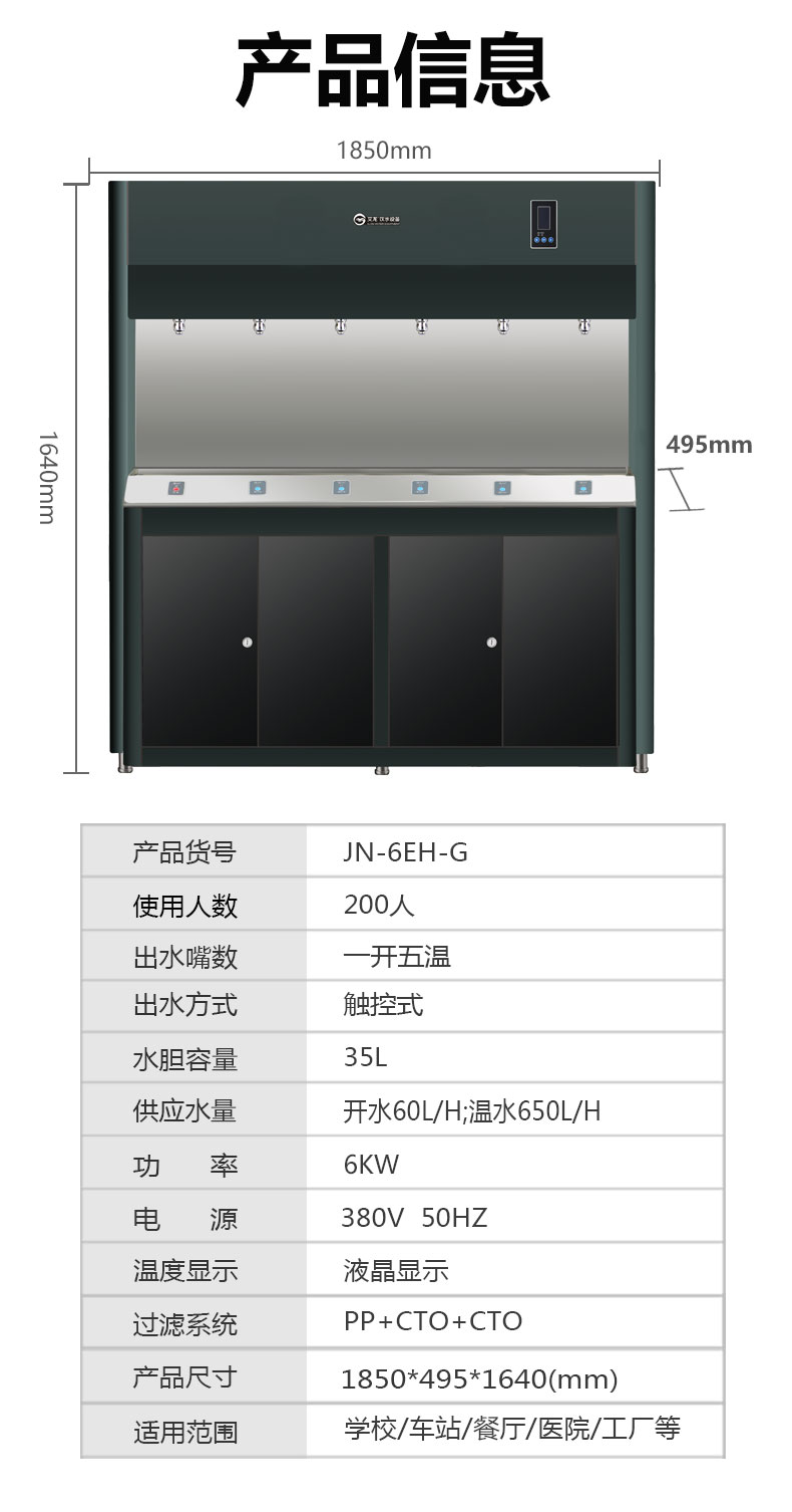 供水量:開水60升/時 溫開水650升/時